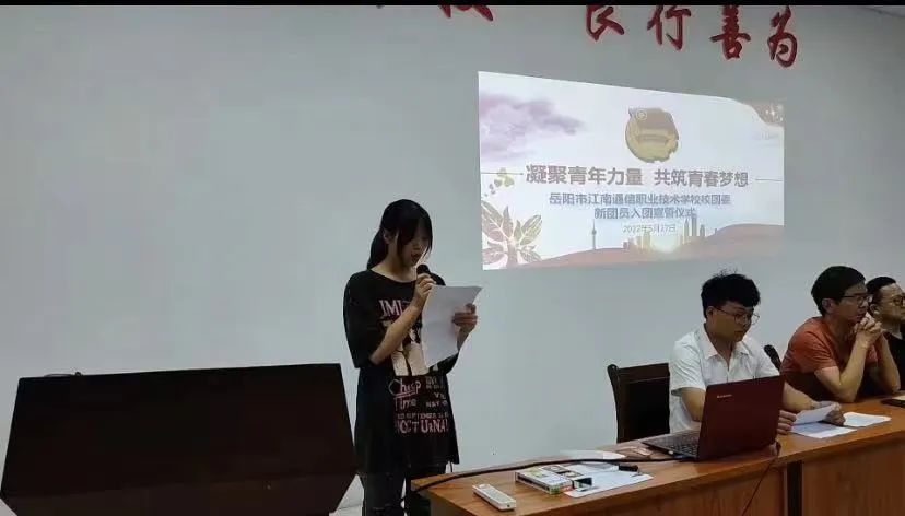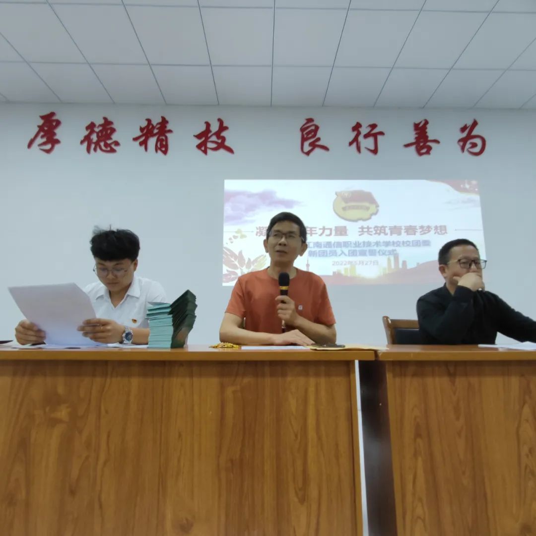 5月27日晚自習,我校在會議室舉行“凝聚青年力量,共筑青春夢想”岳陽市江南通信職業(yè)技術學校2022年新團員入團儀式,團委書記谷祥錦主持入團儀式并代表學校向新團員表示熱烈的祝賀和誠的歡迎,祝賀你們從此成為一名光榮的中國共產(chǎn)主義青年團的團員,你們的加入使我們學校團組織壯大了力量,為我們團組織輸入了新鮮血液,注入了新的活力。